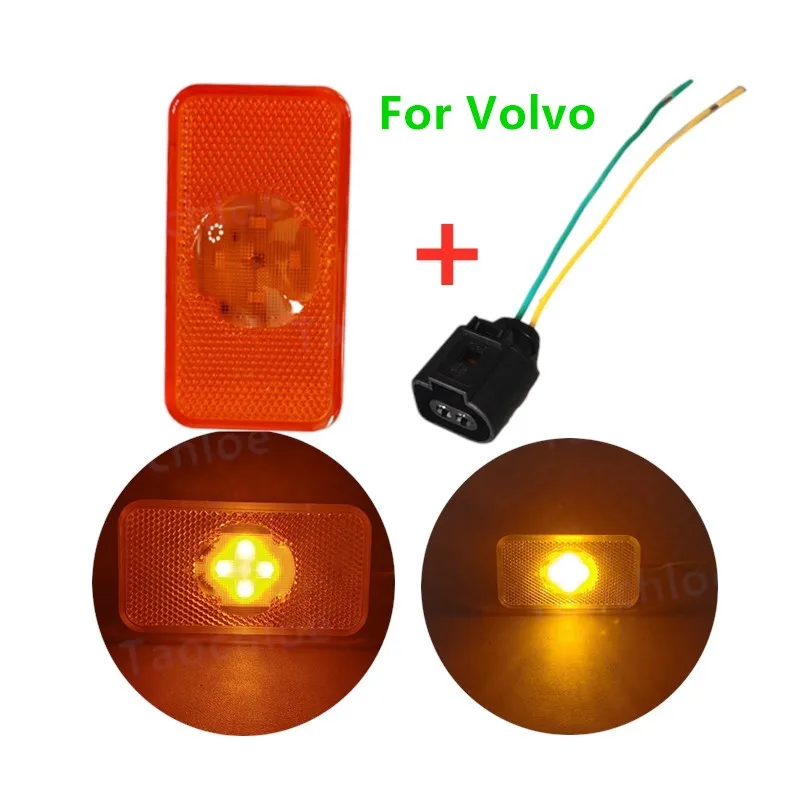 عاكس LED أصفر كهرماني 24 فولت، قطعة واحدة، لمصباح الإشارة الجانبي لشاحنات فولفو، مع قابس توصيل سلكي، متوافق مع علامة Emark التجارية لشاحنات فولفو.